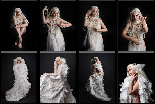 Feathers, Pearls and lace - Fantasy stock model pose reference Pack