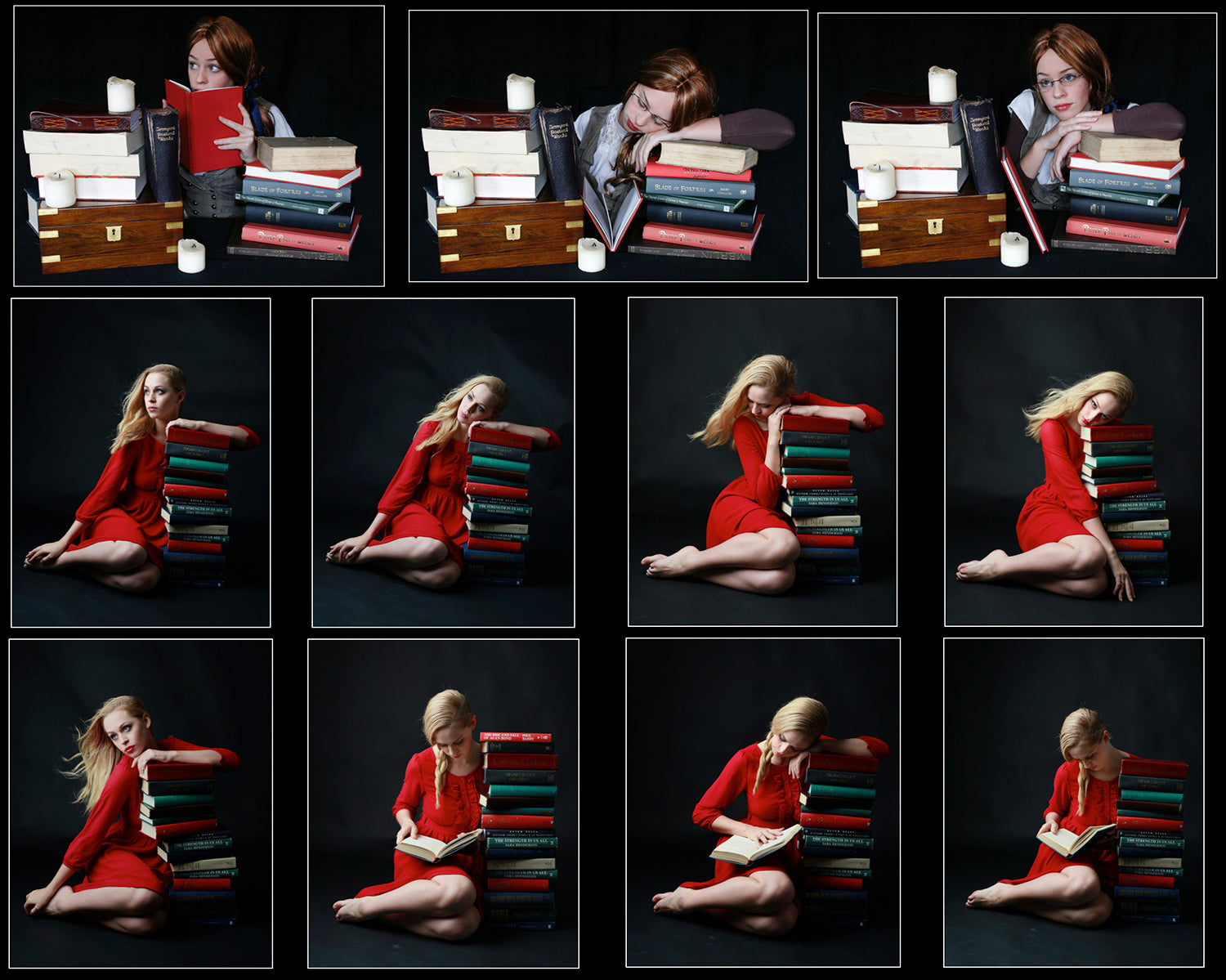 Spark your creativity with this dreamy and imaginative stock photo pack! Featuring four different sessions and 5 outfits, these photos will transport you to a world of endless possibilities. Whether you're an artist, writer, or simply love to read, these photos will inspire your next masterpiece. Get lost in the pile of books and let your imagination run wild.