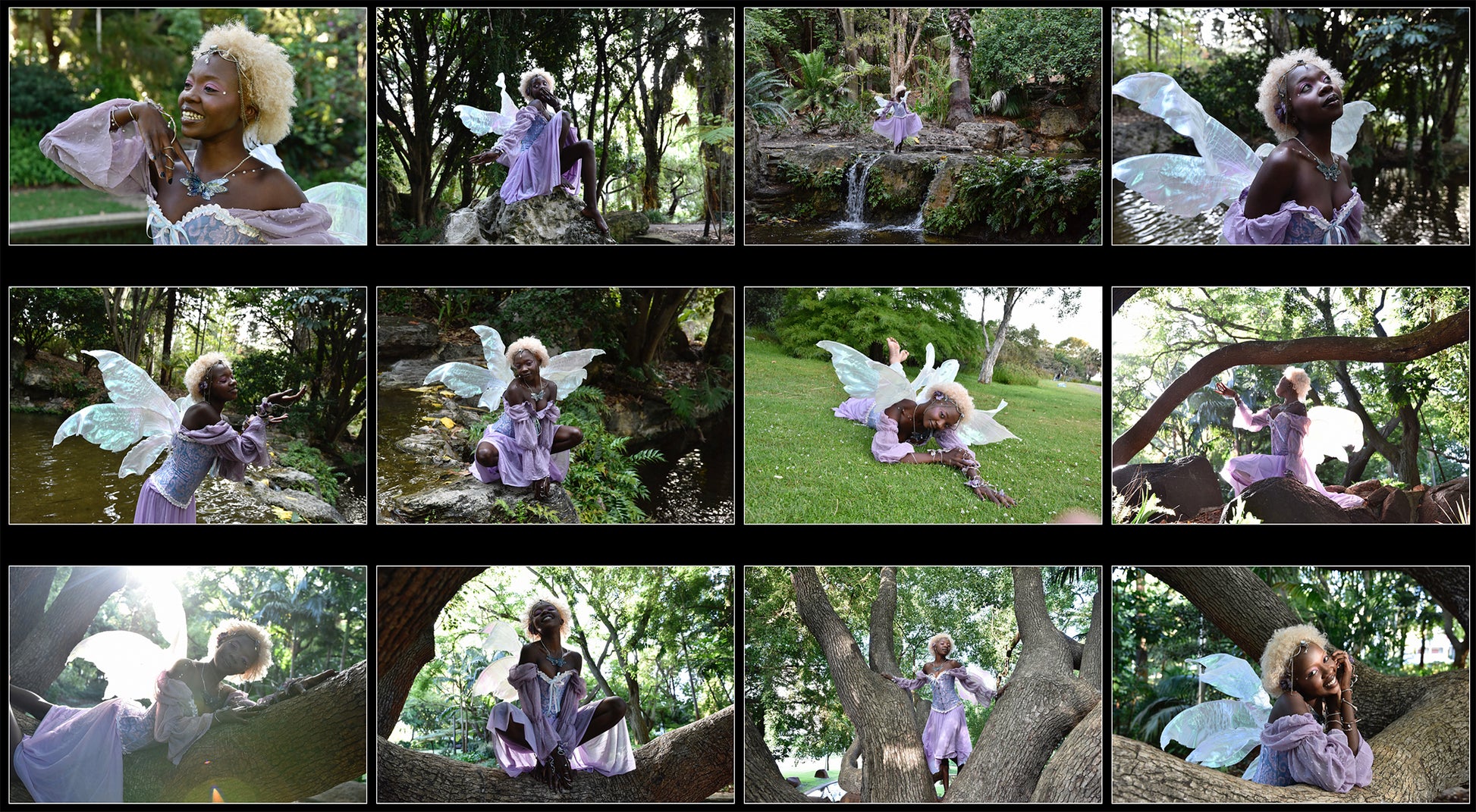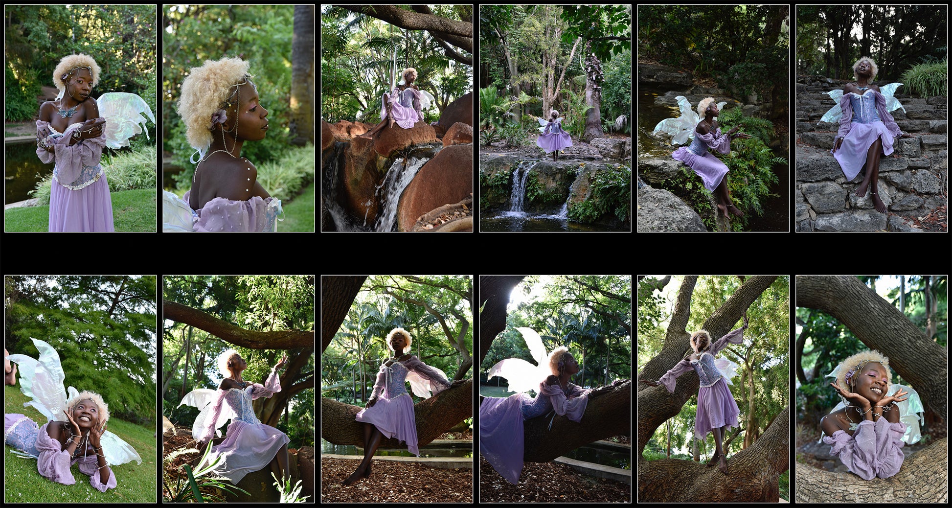 Explore whimsical and playful poses of Diana dressed in a purple fantasy fairy costume, dancing in a park, climbing in trees, and playing in waterfalls. The sunset glow adds a touch of enchantment with beautiful backlit silhouettes and rays of solar flare shining through the trees. Bring your faerie creations to life with this stunning reference pack.