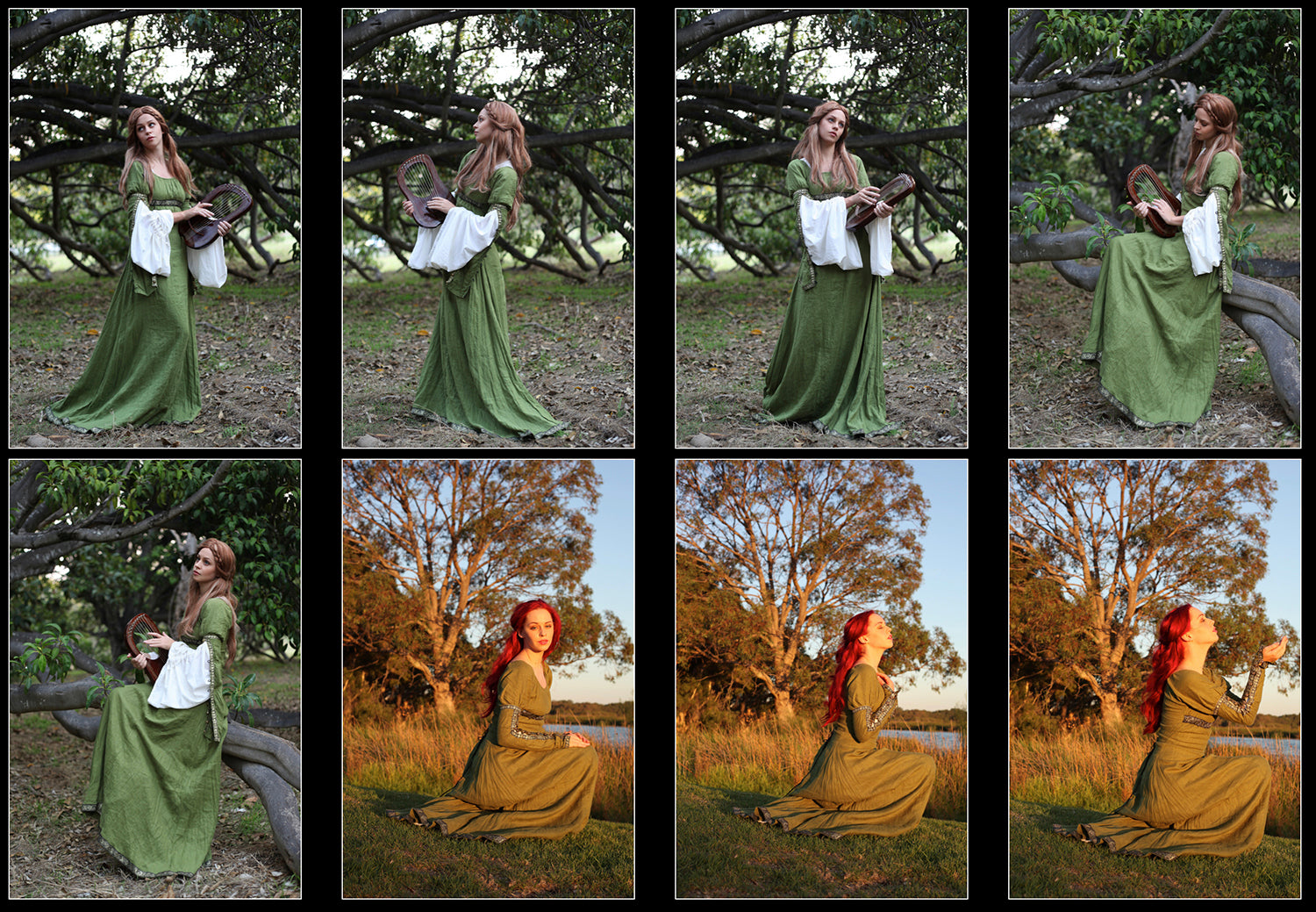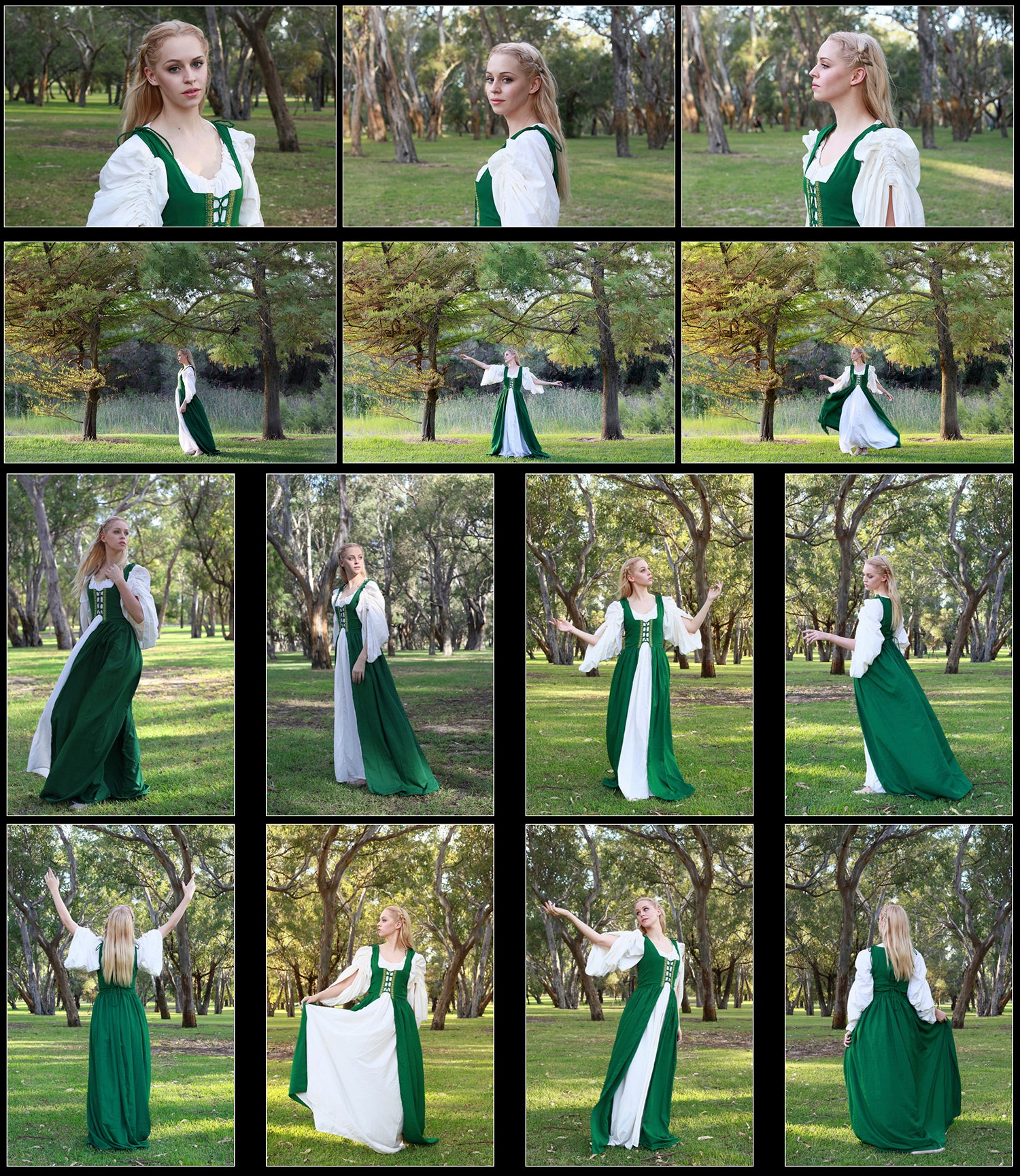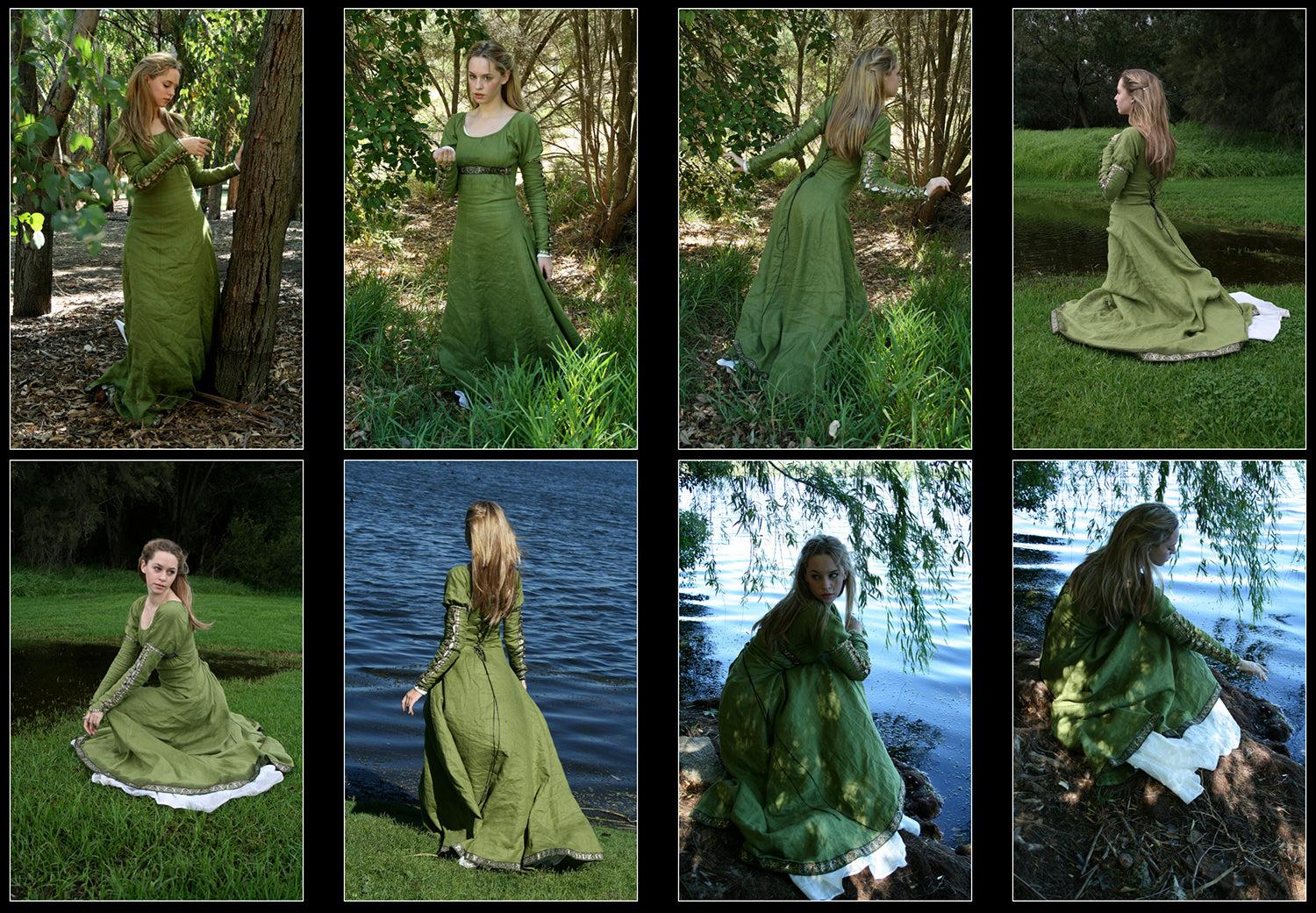 x160 High resolution stock photographs (these are all self portraits, from four different photoshoot sessions)) I am wearing two historical medieval green gowns, inspired by fantasy maidens from fables whilst wandering through lush green woodland and serene lakesides in Australia.