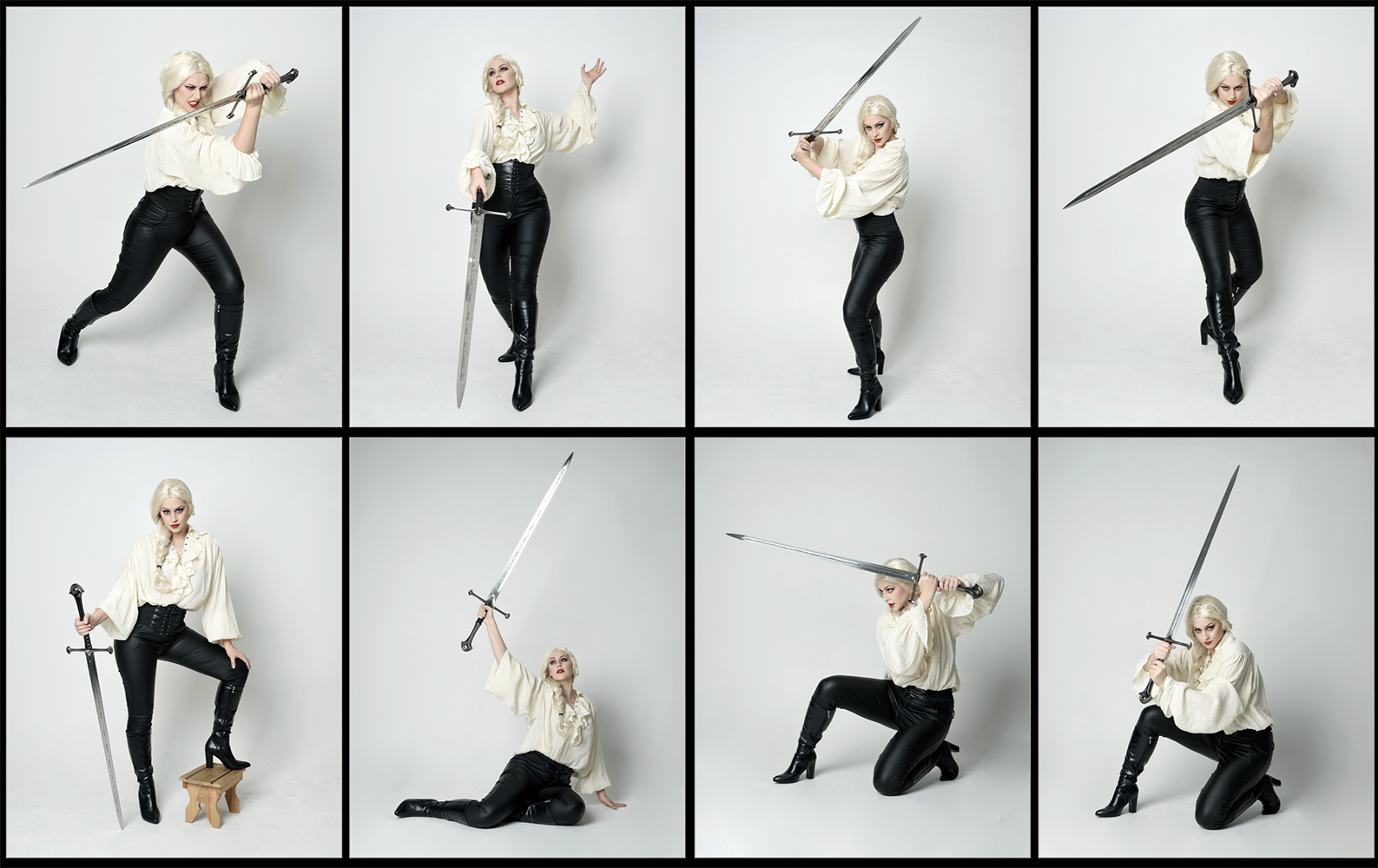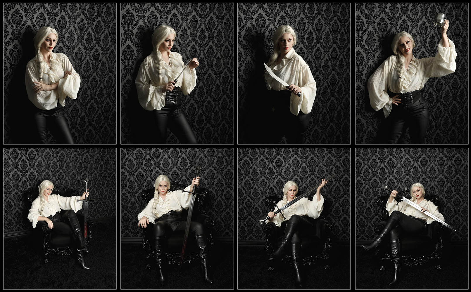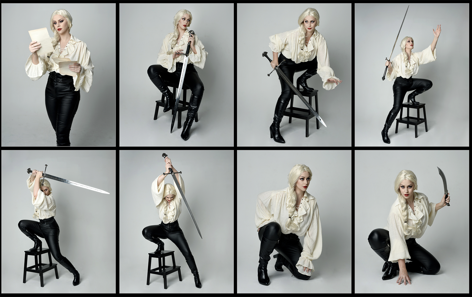 This pack is inspired by the grandeur of Shakespearean dramas and classic fantasy adventure stories. It features dynamic fighting poses and powerful gestures, swords, knives and ornate chairs and backdrops. Whether you’re envisioning a gothic heroine, a daring pirate, or a Witcher-like figure, these reference photos provide the perfect foundation for paintings, photo manipulations, and book cover designs.