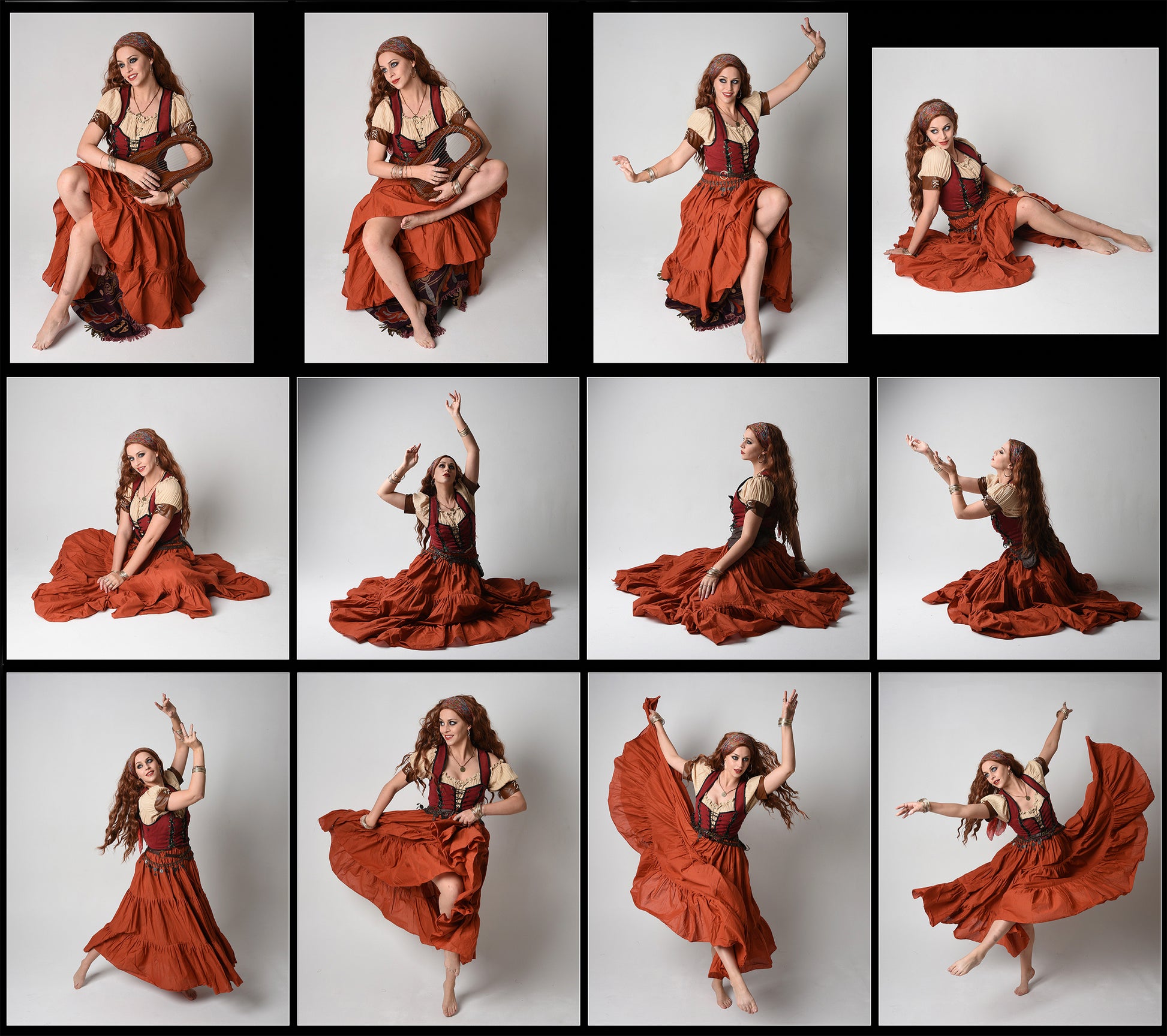 This pack includes glowing orbs, tarot cards and skulls as props with so much variety of poses, including twirling, dancing action shots with flowing fabric.