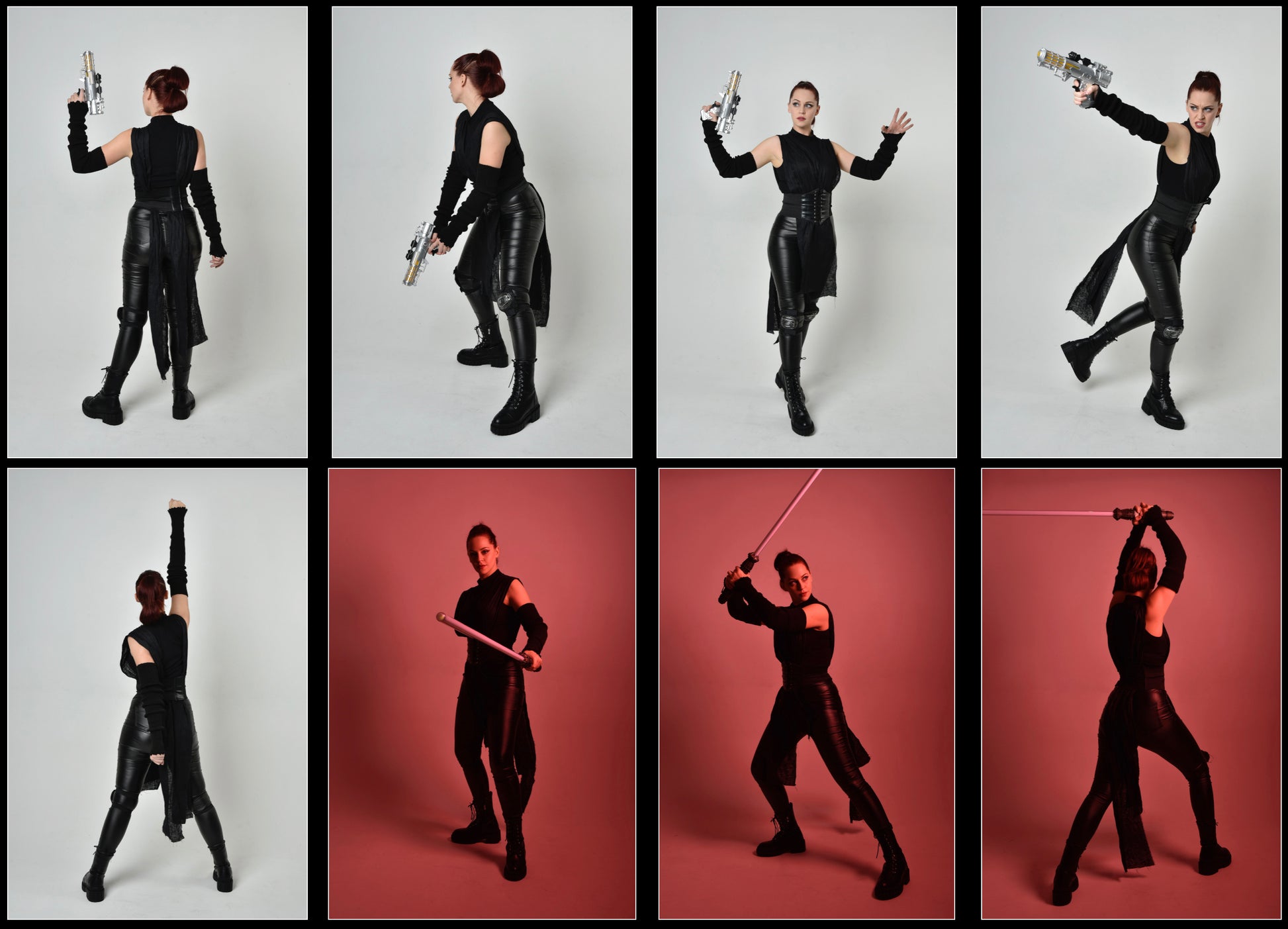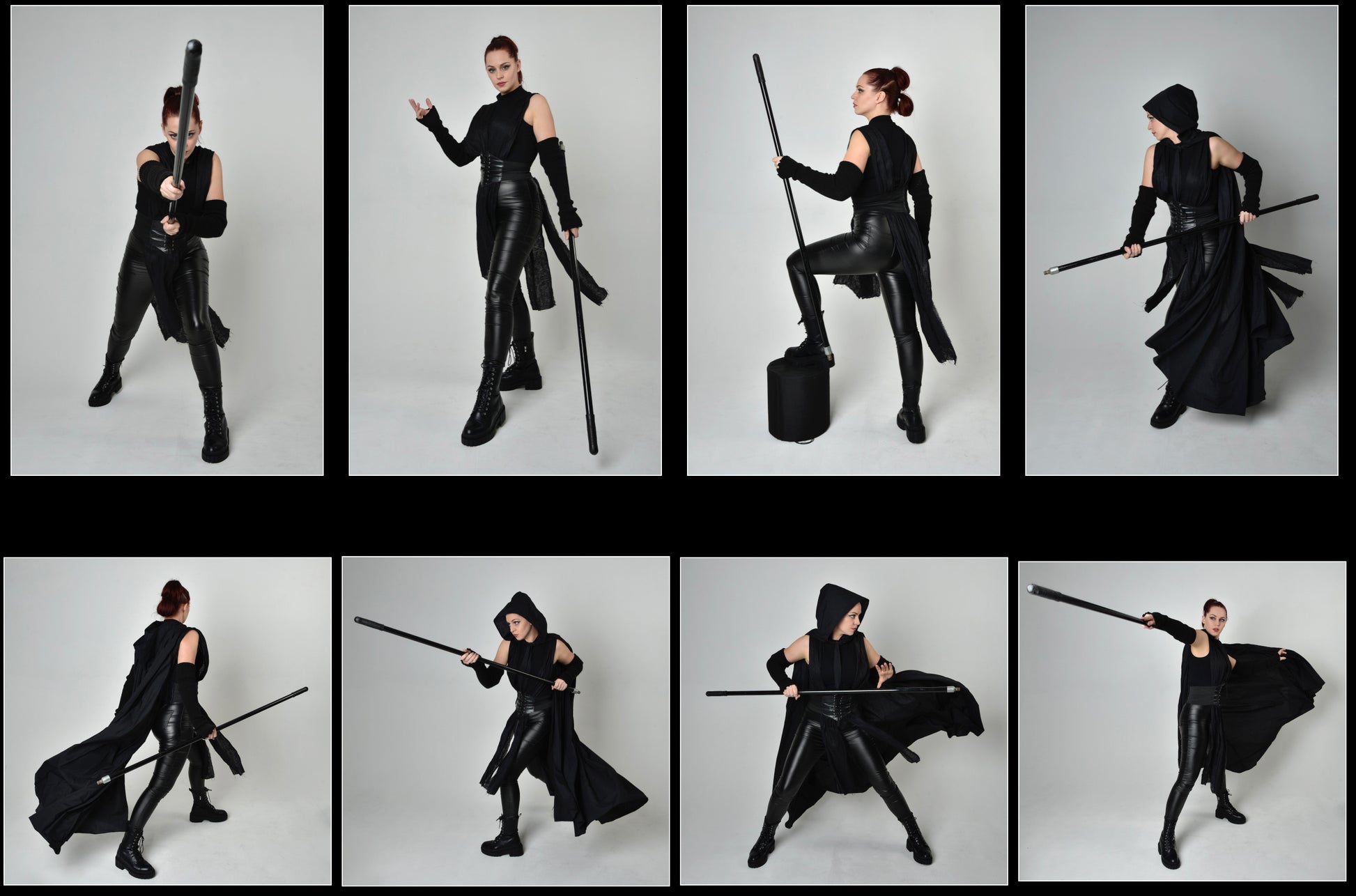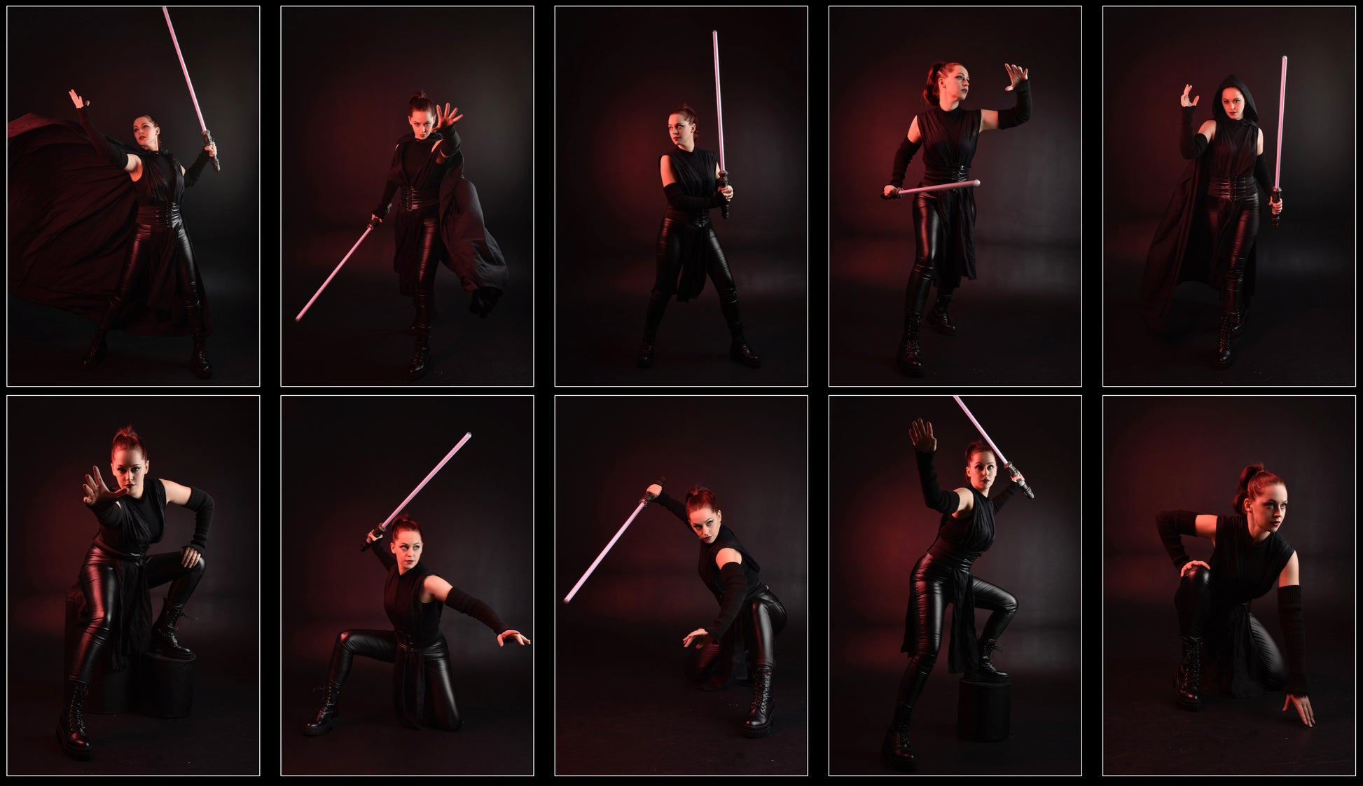 Experience a range of dynamic poses, capturing the power of both standing and sitting positions. The force is strong with fluid, gestural hand movements and a striking cloak. Choose from a variety of light and dark studio backgrounds, creating a cinematic atmosphere with a moody red silhouette.