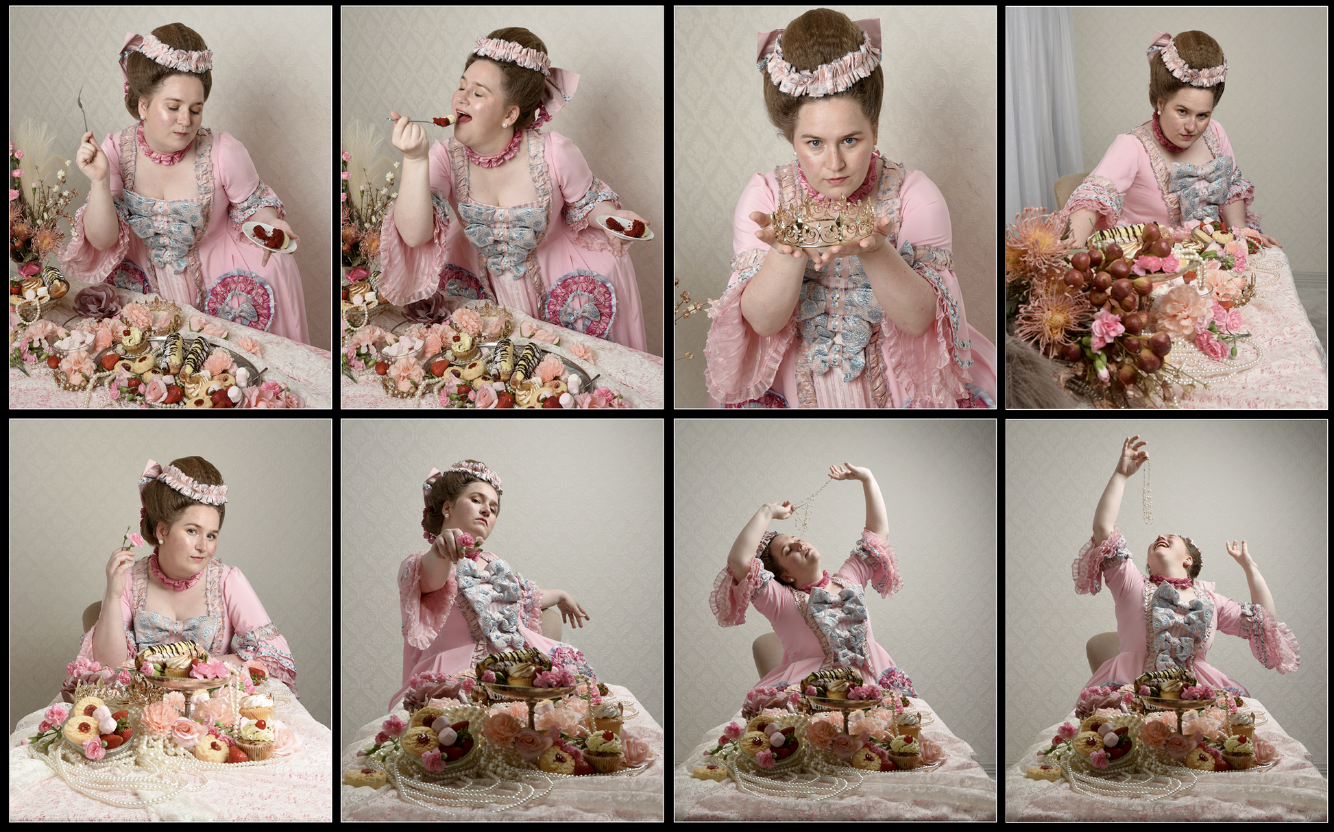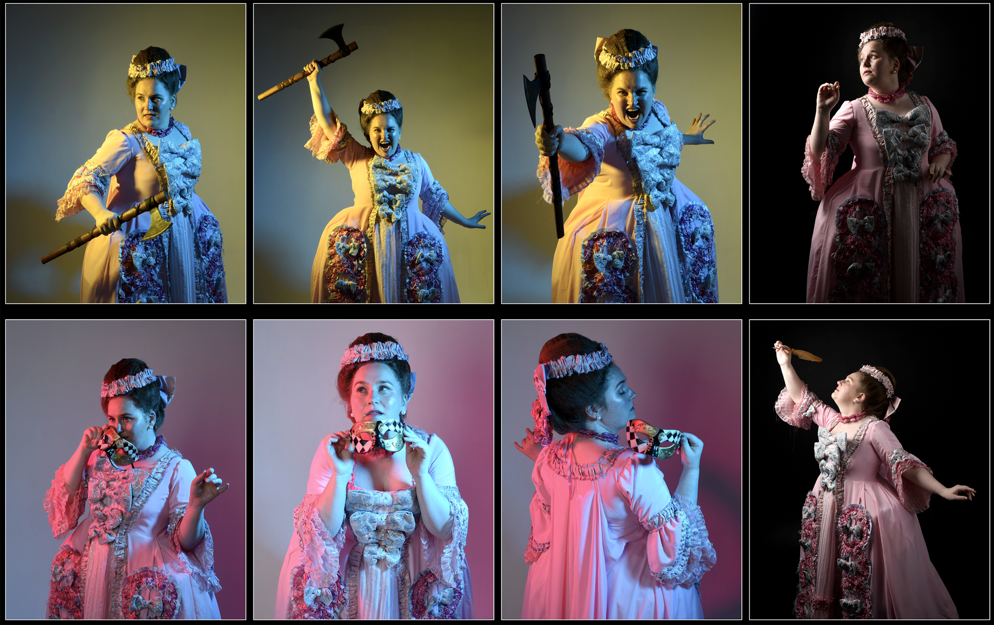 Kirilee is a fantastic comic actress and this photoshoot features her playful expressions and theatrical characterisation of this indulgent noble.