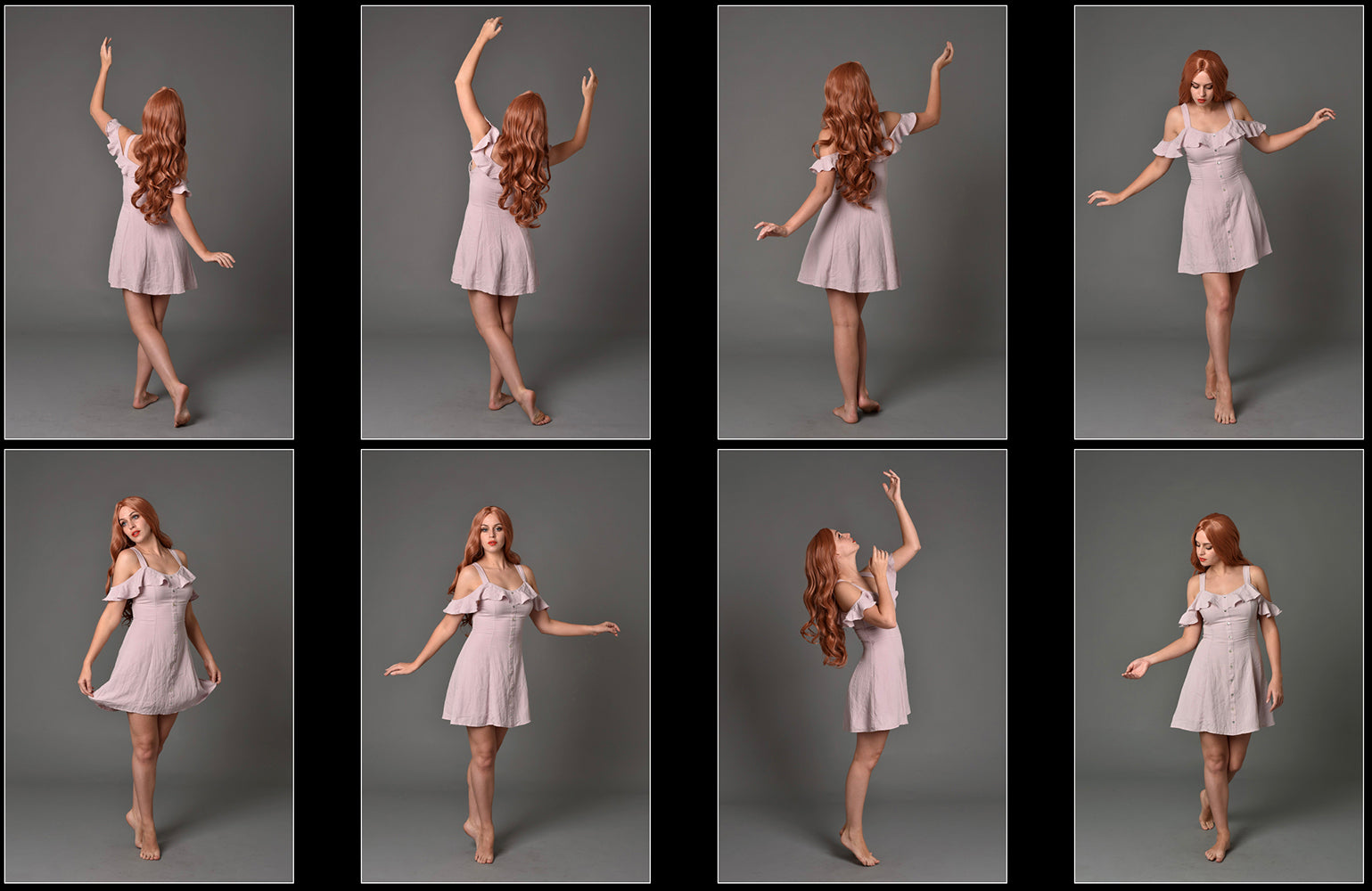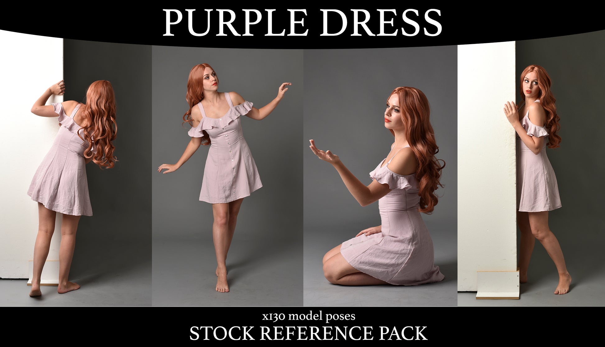 Each photo features a beautiful, full-length pose against a neutral grey studio background, showcasing a variety of ballet-inspired ng poses. The pretty purple dress adds a touch of sweetness to every shot, making you feel like you've stepped into a fairytale. Simple yet enchanting, this pack is perfect for all your fairy-inspired needs.