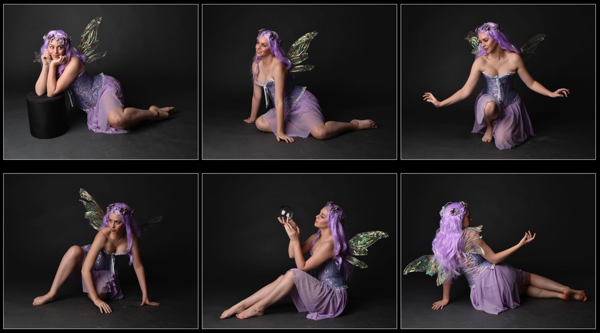 x300 high quality reference images of a fairy girl with wings, wand, and crystal orbs. The session offers a variety of playful, enchanting, and mystical poses, including standing, sitting, crouching, and dancing.