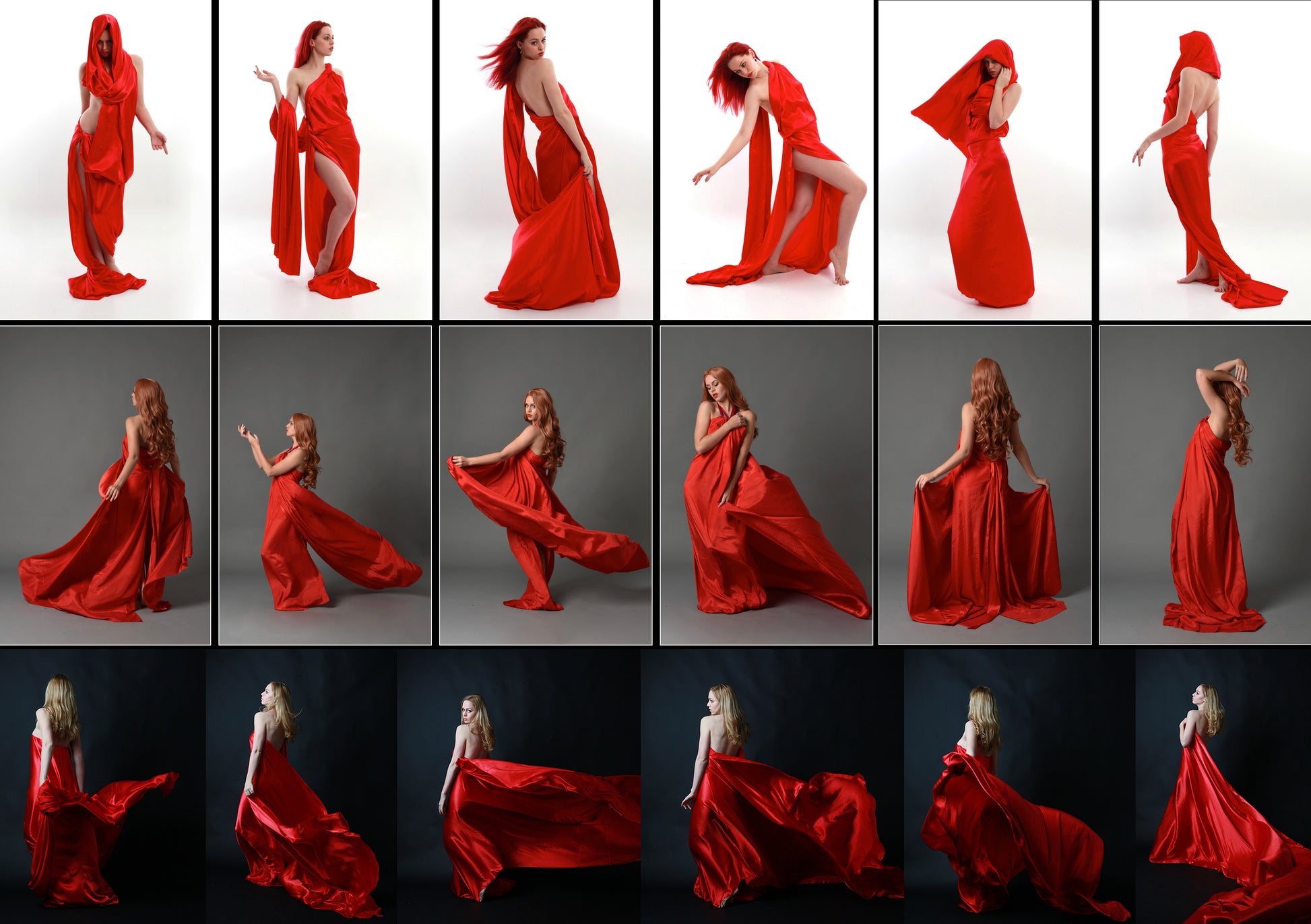 This is a collection of x191 images from five different self portrait photoshoots (from between 2011 and 2017) I utilised a red silk fabric to create interesting drapery, toga-inspired flowing garments that complement the graceful female form