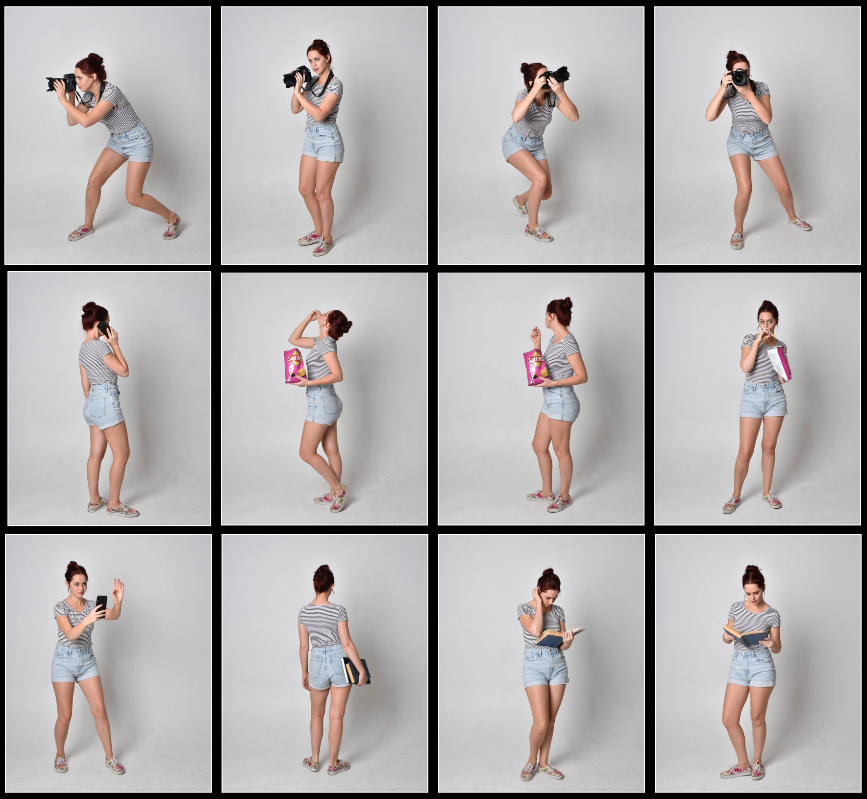 x200 high resolution stock photos shot in a studio, these are all self portraits where I am wearing casual t-shirt, denim shorts, and a jumper.