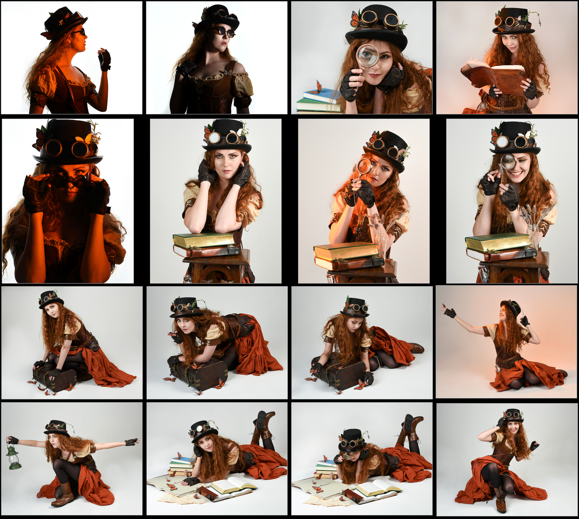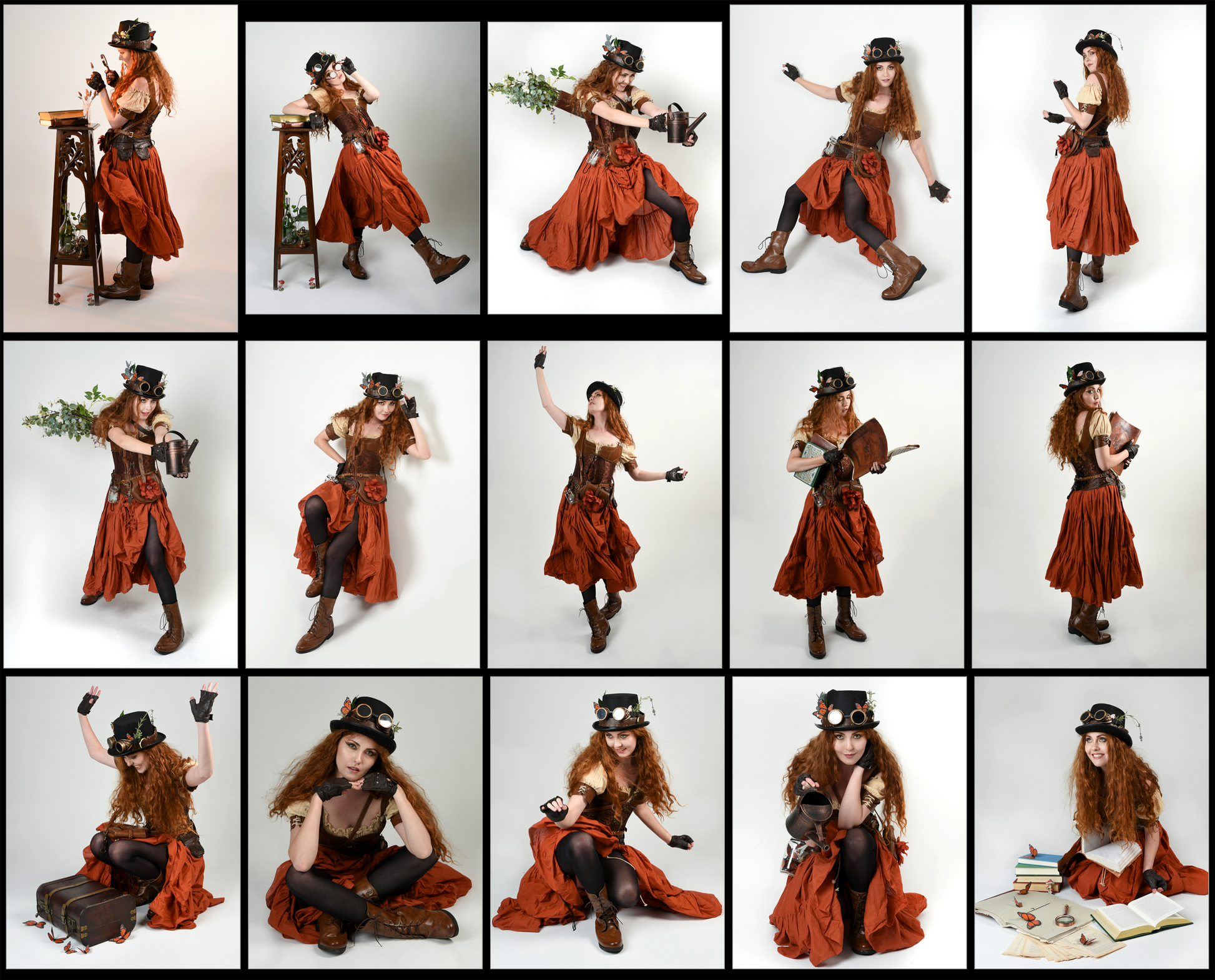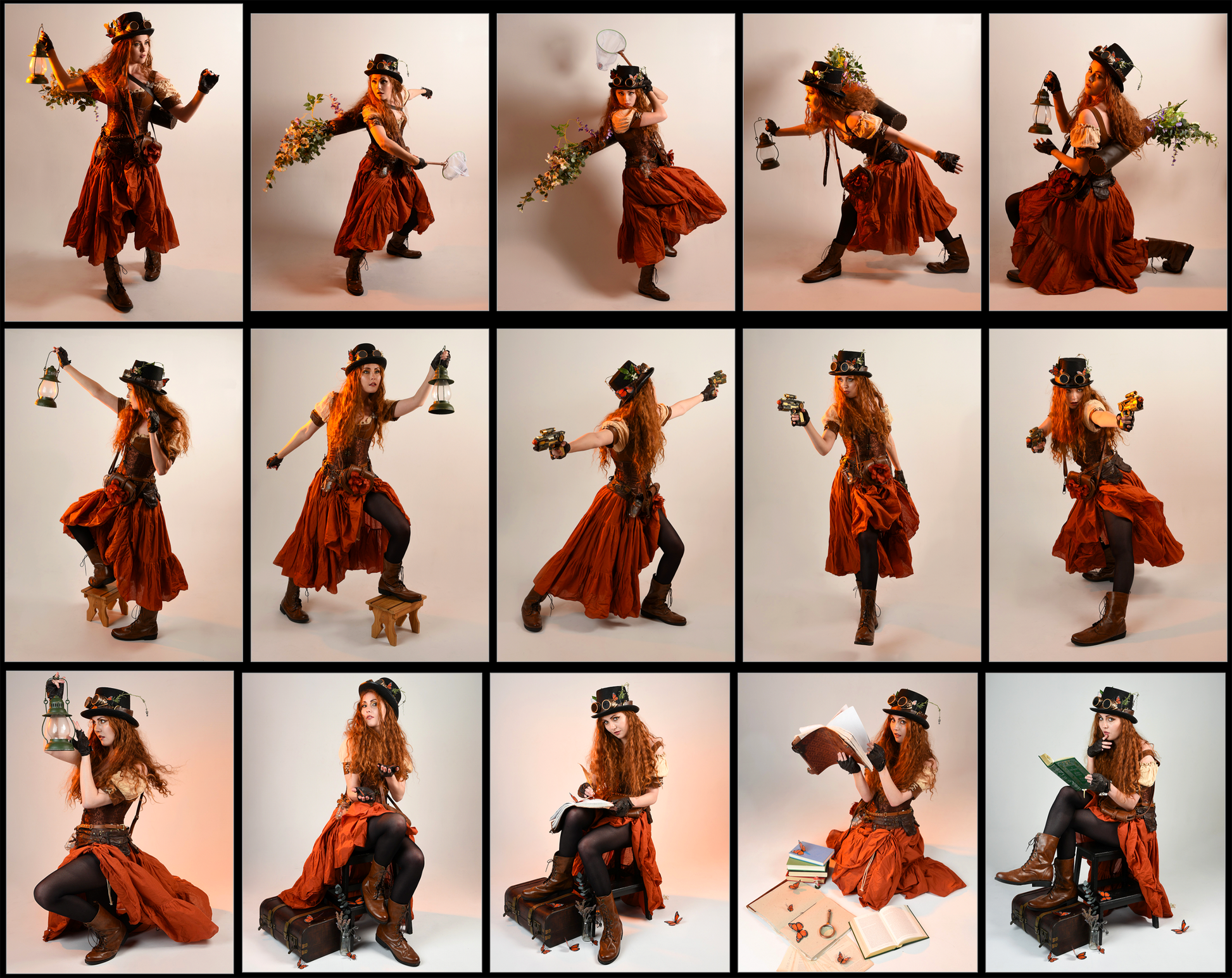 Steampunk Botanist - Fantasy stock model pose reference pack